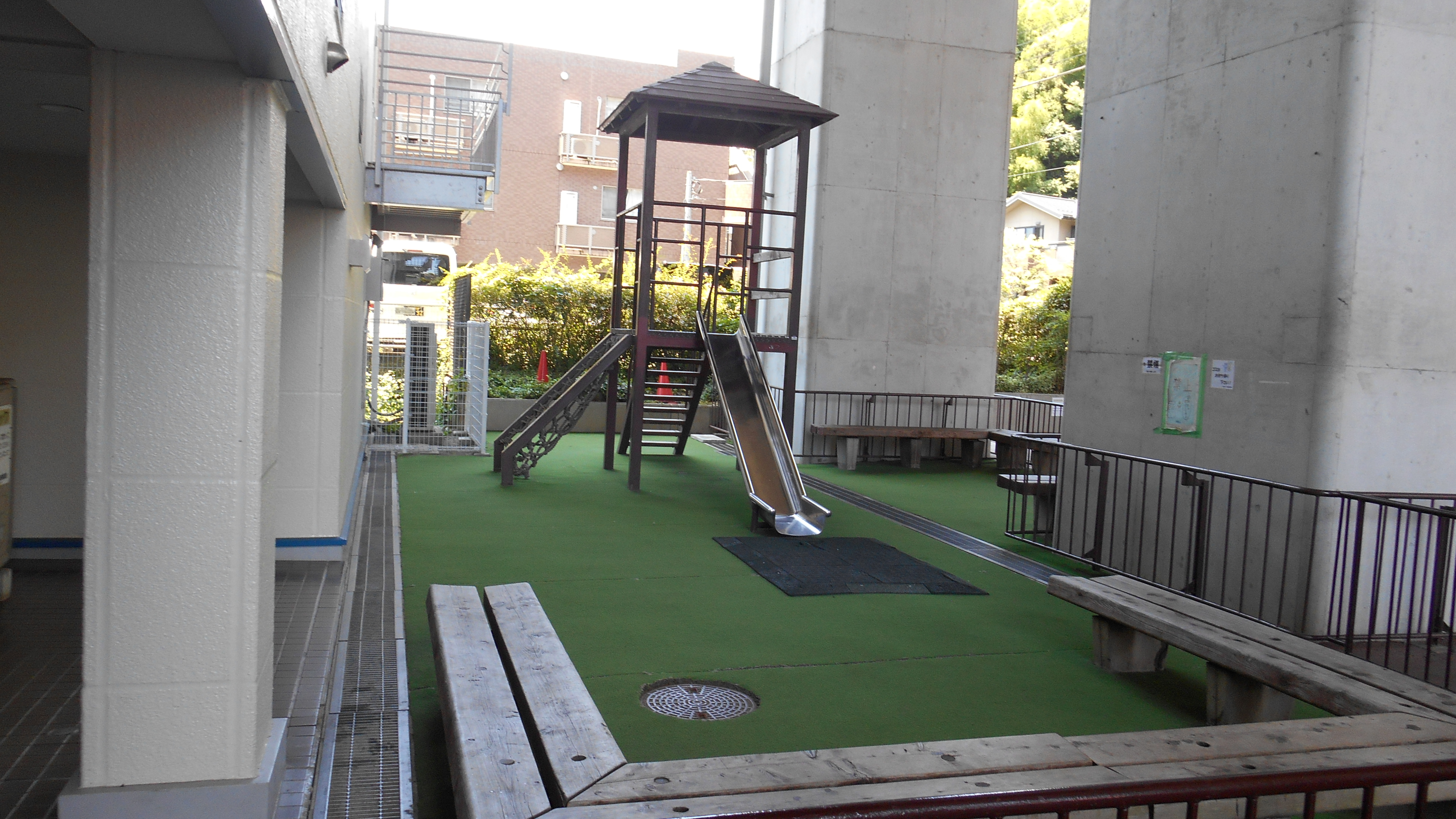 ◆館外遊具エリアには休憩用ベンチ、滑り台などがあります。